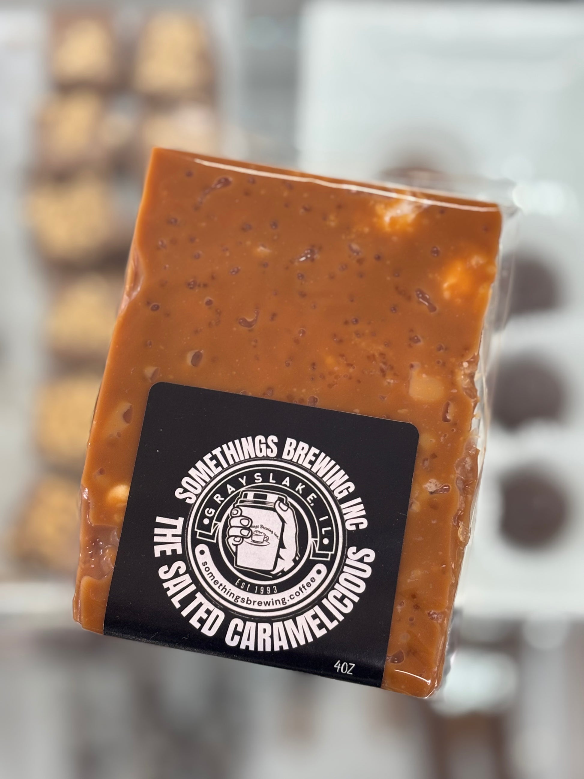 The Caramelicious Rice Crispie Treat Bar! Made with crispy cereal, fresh marshmallows, buttery caramel, REAL butter (NO margarine in our crispy treats!) & a hint of sea salt. A Classic Treat with a sweet twist.