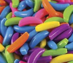 Fruit flavored, crunchy rainbow bananas. Sold in a 5 ounce container.
